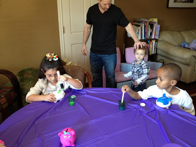 Then I asked her what she wanted to do as an activity at her party. She picked out piggy banks. Lots of fun, but do you see where I'm going with we don't really have a theme to this party.